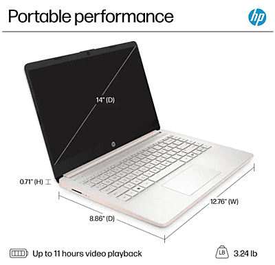 HP 14 Laptop, Intel Celeron N4020, 4 GB RAM, 64 GB Storage, 14-inch Micro-edge HD Display, Windows 11 Home, Thin & Portable, 4K Graphics, White